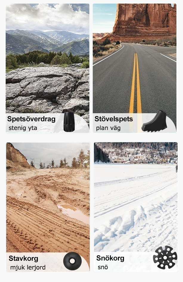 På steniga, leriga eller hala underlag ger stavarna stabilt stöd och hjälper dig att röra dig tryggt även i tuff terräng.